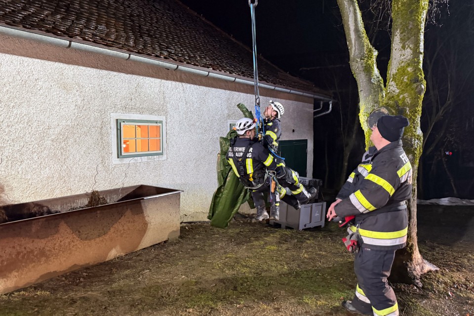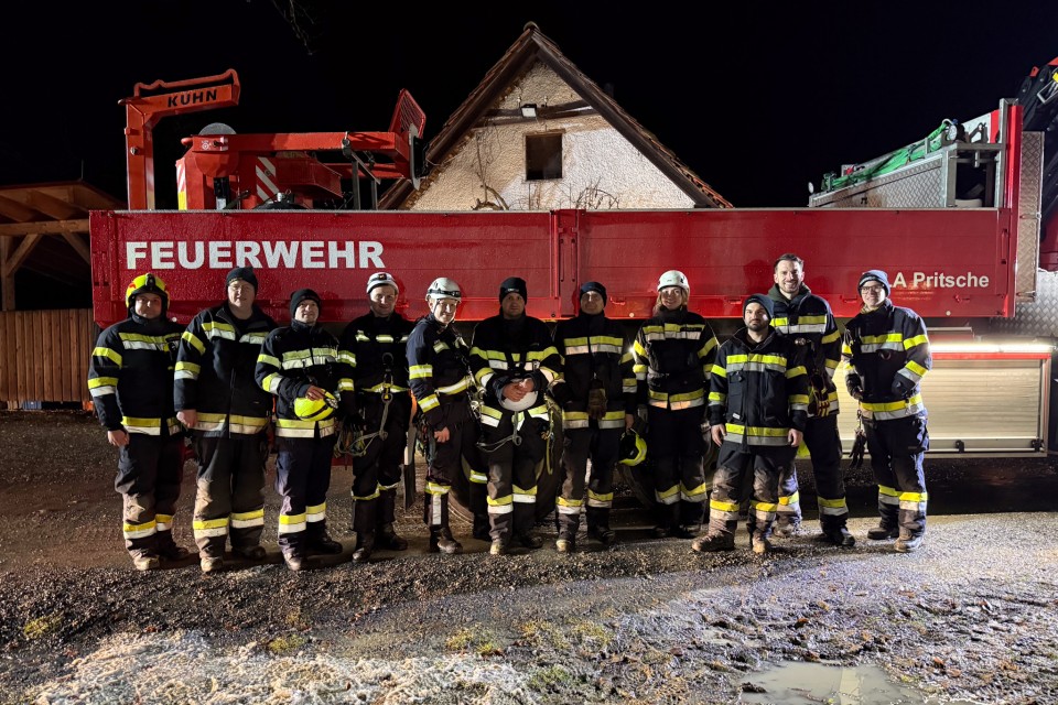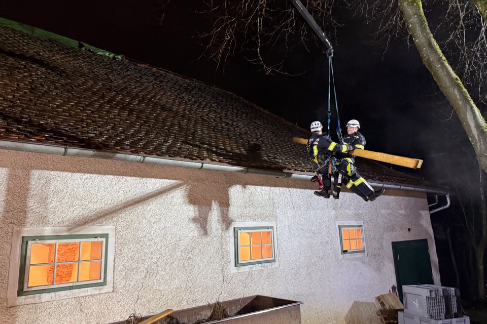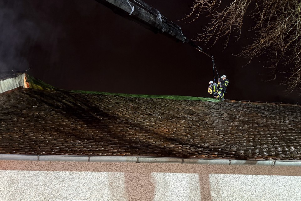 Das Dach sowie der Dachstuhl konnten schließlich gesichert werden. Ein Dank gilt allen eingesetzten Kräften für die gute Zusammenarbeit.