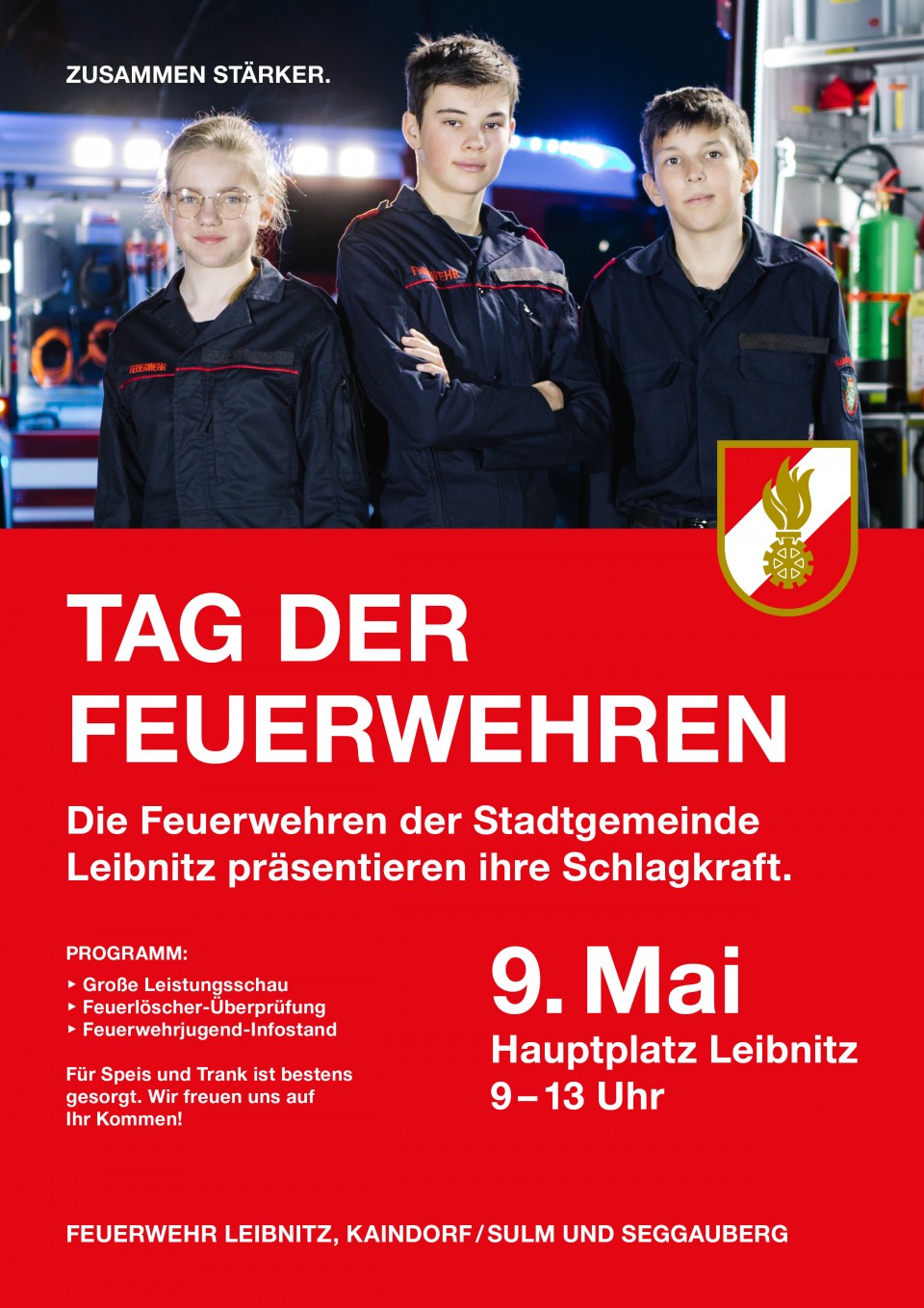 Du bist zwischen 10 und 15 Jahren und suchst etwas, das mehr ist als nur ein Hobby? Dann komm am 9. Mai von 9 bis 13 Uhr zum „Tag der Feuerwehren“ am Hauptplatz Leibnitz und entdecke, was in dir steckt.